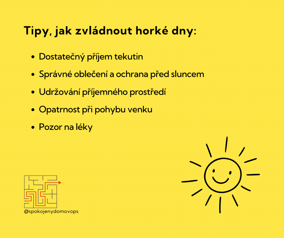 Letní horka mohou být pro seniory nebezpečná, ale při dodržování jednoduchých opatření lze rizika minimalizovat. Důležité je myslet na dostatečný příjem tekutin, vhodné oblečení, omezení pohybu na slunci a udržování příjemného prostředí. S těmito zásadami mohou i horké dny probíhat v pohodě a bezpečí.